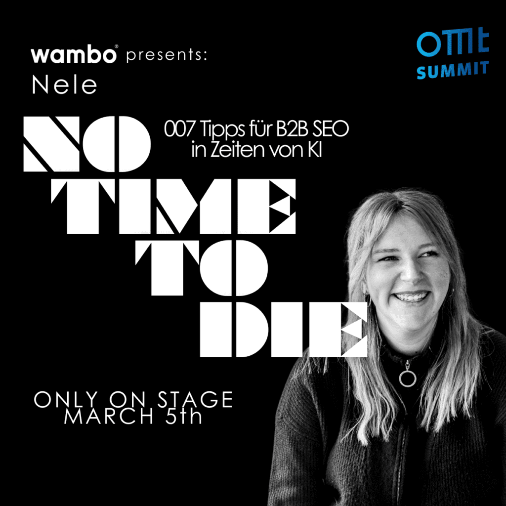 Unsere SEO Teamlead Nele wird am 05.03. um 12.45Uhr in Raum 3 euch die wichtigen Tipps für B2B-SEO im KI Zeitalter zeigen!